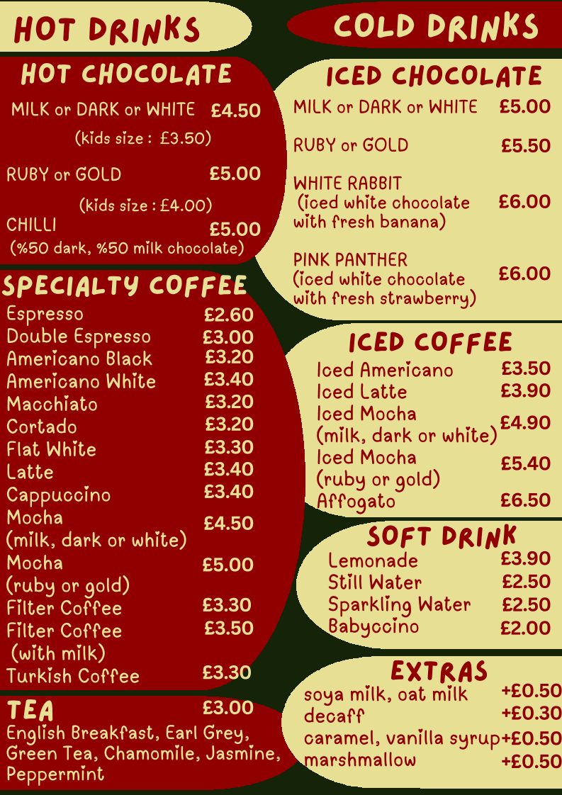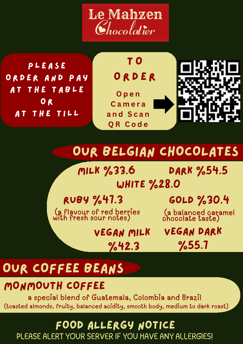 Le Mahzen Chocolatier & Coffee Menu